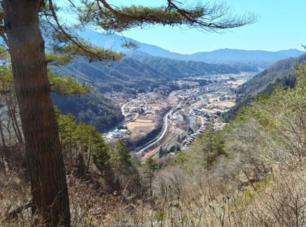 登山口から25分で稜線に出ました。 日義の街並みが見えます。