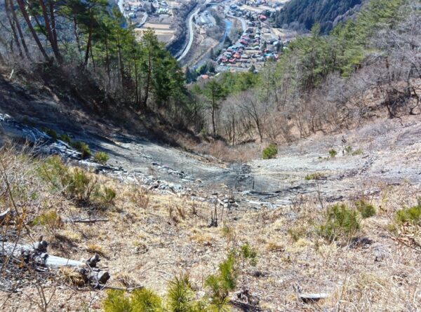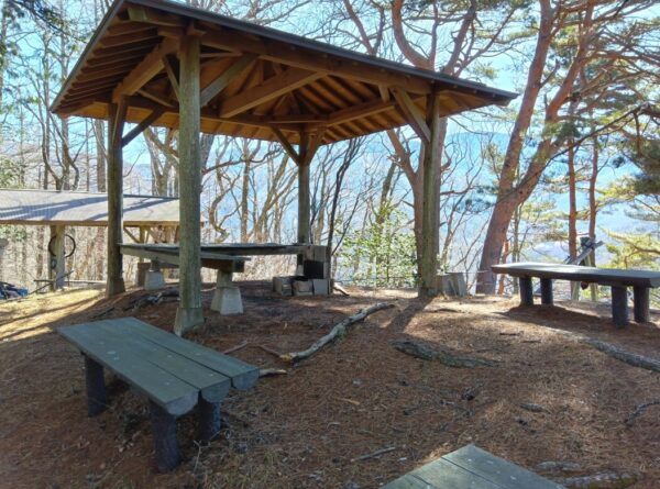 真下にらっぽしょ祭りの火文字の斜面があります。 四阿もあり、景色を見ながら休憩できます。