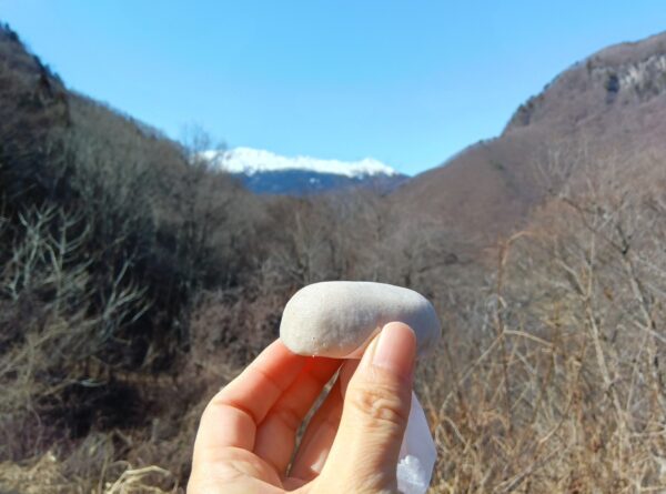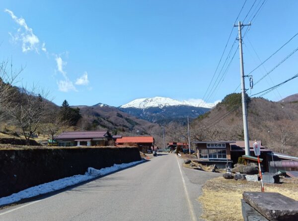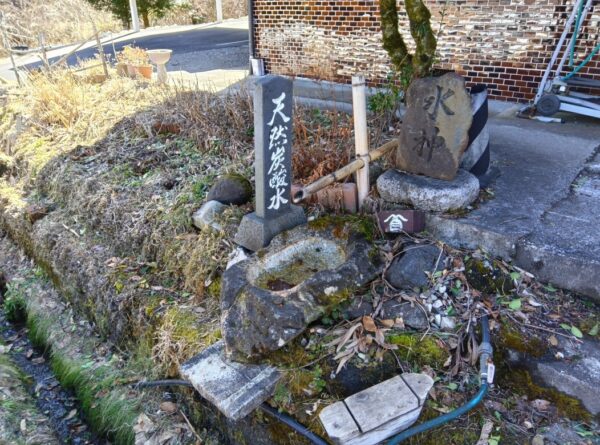また、この道沿いに炭酸水が出る場所があると聞いたので楽しみにしていたのですが、涸れていました。冬は出ないそうです。「3月下旬かな…。」とのこと。また、「どうして炭酸水が出るんでしようね?」と聞いたところ、「この(道路)筋は炭酸水が出るんだよ。」とおっしゃっていました。