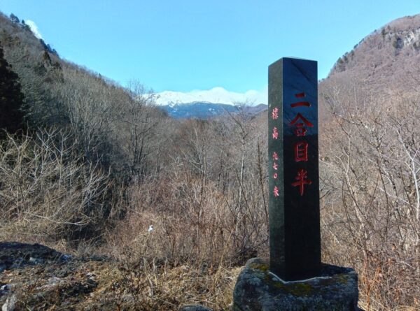 二合目の石碑です。 白川氷柱群方面との分かれ道は直進します。