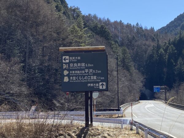 国道361号_⽊曽から伊奈⽅⾯へ(花渕トンネルの⼿前にある標識)[3月上旬]
