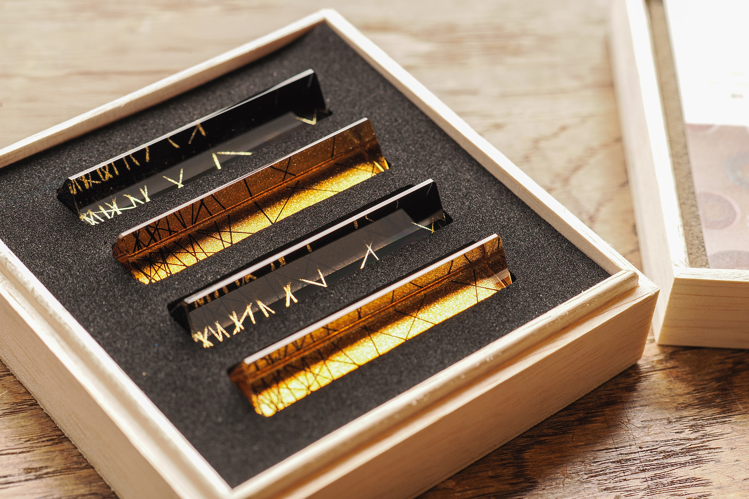 東京インターナショナル・ギフト・ショーで見かけて以来ずっと気になっていた、木曽平沢にある「丸嘉小坂漆器店」の漆硝子の箸置きも、こちらで購入できました!