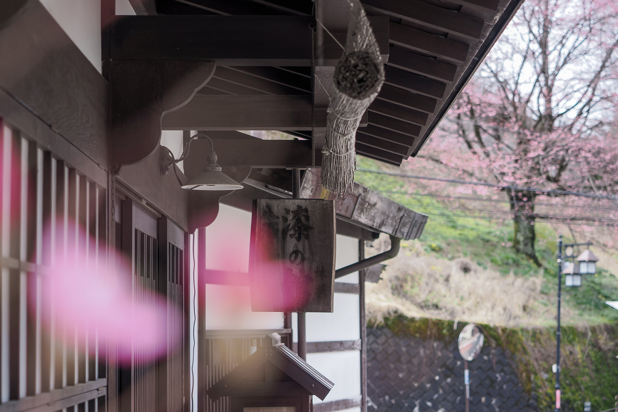 今年は桜の開花が早く、昨年は「春の蔵びらき」の時に満開だった、木曽町の桜たちがすでにその艶を競い合っていました。