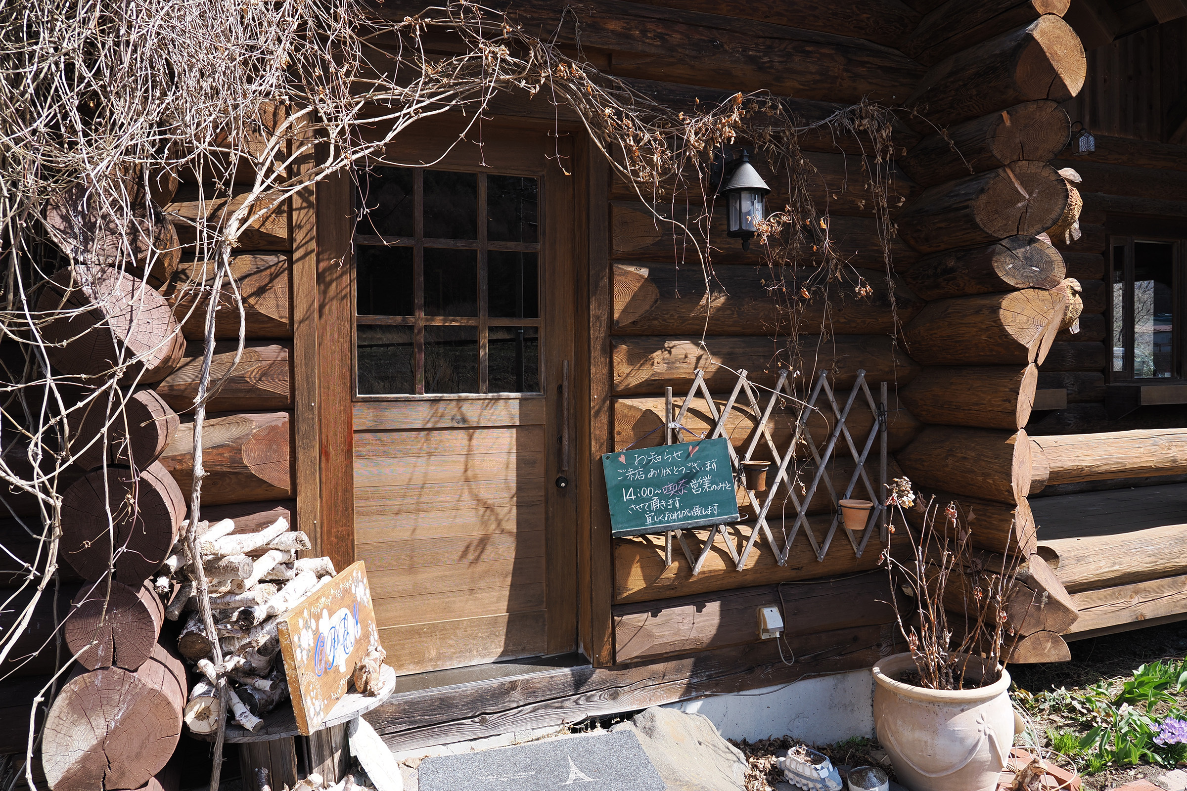 When you visit the cafe you can enjoy set meals and cakes in the relaxing atmosphere of a natural log cabin.