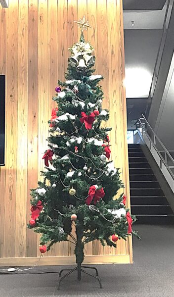 に変わっていています(通常は「蛍の光」などを流しています)。図書館の中でクリスマス気分を味わってもらえたらうれしいです![]()