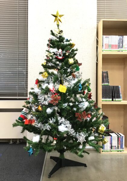 に変わっていています(通常は「蛍の光」などを流しています)。図書館の中でクリスマス気分を味わってもらえたらうれしいです![]()