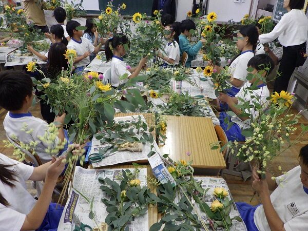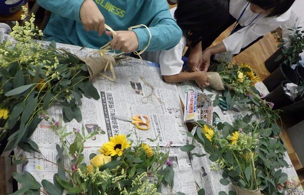 として、フラワーアレンジメント体験授業と出前授業を行いました。