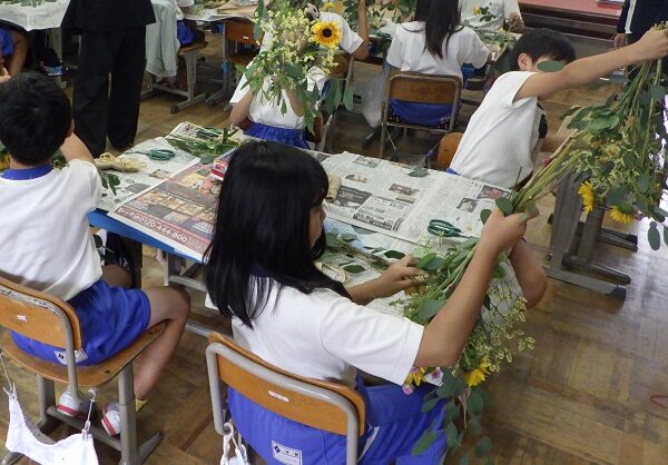 洗馬小学校で「フラワーアレンジメント体験授業」「出前授業」を開催しました!