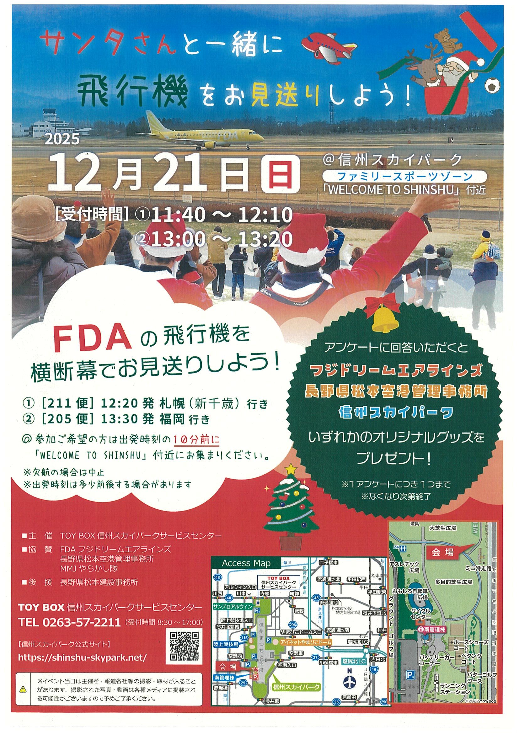 松本平広域公園(信州スカイパーク)では、昨年好評だった「サンタさんと一緒に飛行機をお見送りしよう!」を今年も開催します🎅