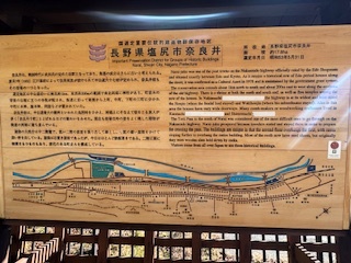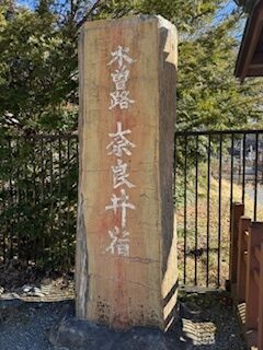 宿場の中心部に近づくと、重要伝統的建造物群保存地区について説明した大きな木製の看板を見つけました。町並みの範囲や歴史、建物の特徴がわかりやすく紹介されています。「これからどこを歩こうか」とイメージをふくらませながら読み込んでしまいました。近くには「木曽路 奈良井宿」と刻まれた石碑も立っていて、ここが木曽路の要の宿場であったことを改めて実感します。