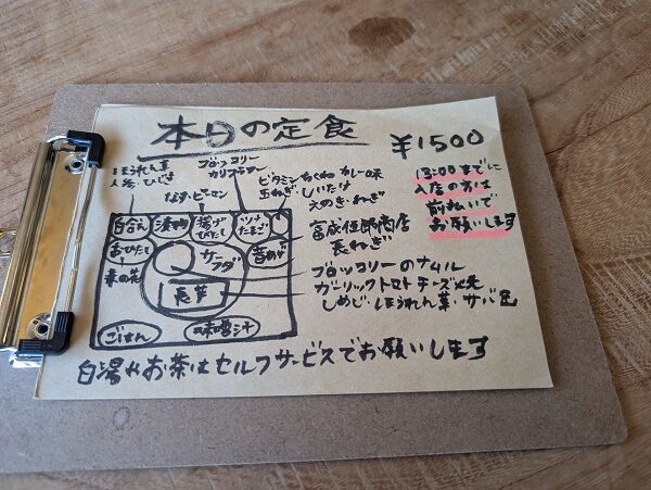 メニューは【本日の定食】一択。小鉢いろいろ、心のこもった野菜中心の定食です。