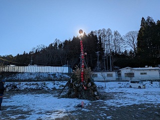 年末に育成会で竹や木を伐りだしてやぐらを組み上げました。