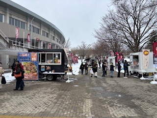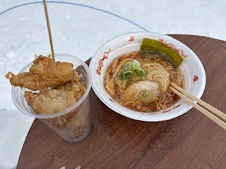試合が始まるまでまだ時間があったので、会場で屋台があったのでラーメンを食べて開始を待ちました。