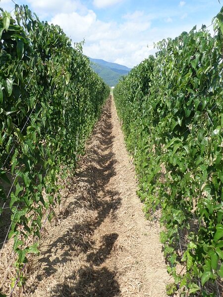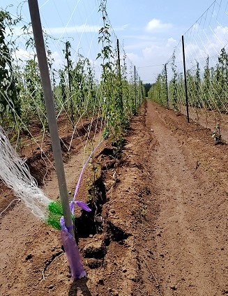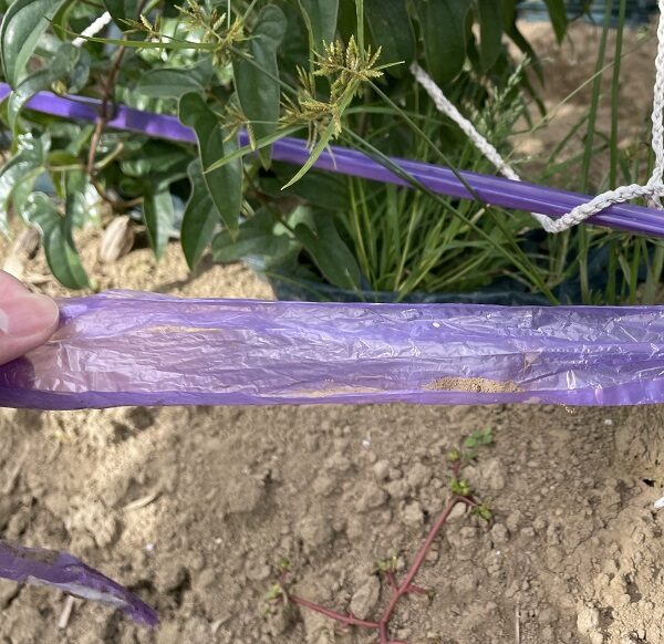 ヒモ自体は運動会のポンポンを作ったり、荷造りで使う一般的なものですが、ほとんどの畑で使用されているのは何と紫色なのです。