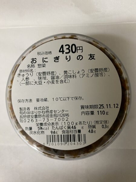 今回は当ブログでもお馴染みの「ほりがね物産センター」で製造・販売している絶品の味噌漬け【おにぎりの友】を紹介します。