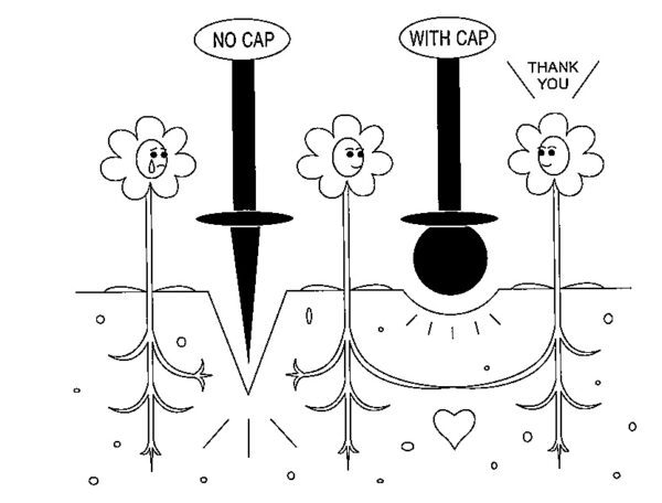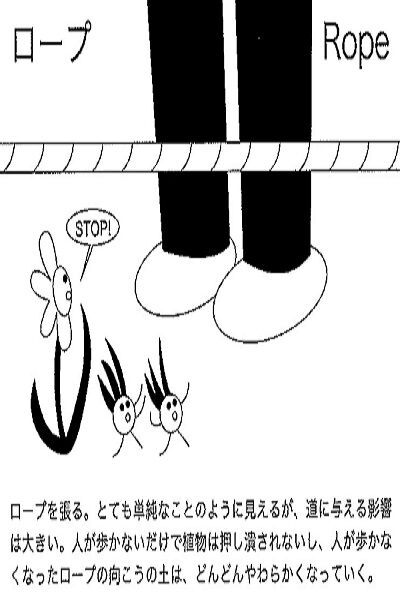尖った先端が深く突き刺さり穴が開いてしまう→雨水の流れ込みによって穴が広がってしまう→流れ出た土が草地(お花畑)に流れ込んでしまい、植物や小動物の生息環境を狭めてしまうかも…。植物の根が傷つく事もあるかも知れません。それが原因で枯れてしまう事も…