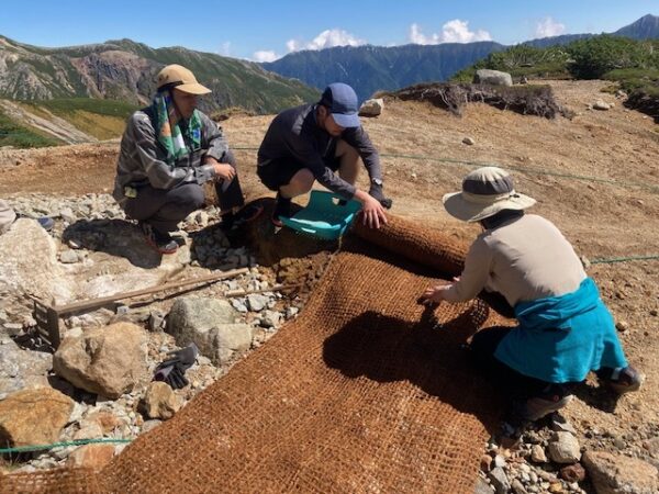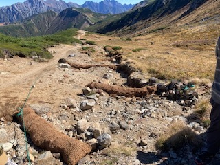 標高の高い山岳地域では、道や周辺風景の荒廃が拡大しないように、各山小屋さんが様々な手法で道直しや保全活動を行ってくれていますし、国県も助成制度を立ち上げて支援しています。