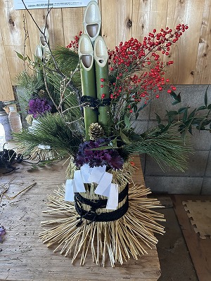 体験で使われた材料のわら、竹、マツ、ナンテンやウメなどは地域の里山から採れたもので、里山の豊かな恵みを感じました。