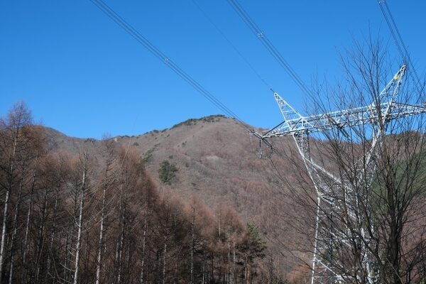 自分が登った日は、登山道の雪は北斜面などに1~2cm程度、下りはチェーンスパイクをつけました。帰りは上りと違う登山道を下り、途中では戸谷峰が見えました。