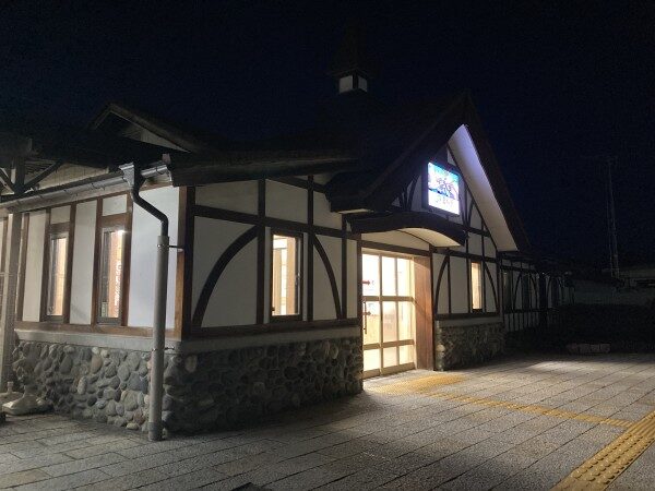 当日の早朝。会議の開始時間に間に合わせるには始発に乗らなければいけません。暗い中、最寄り駅である豊科駅へ……