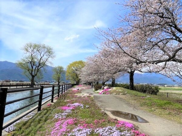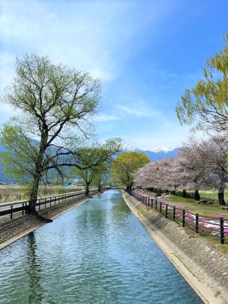 桜、常念岳、芝桜、ヤナギを楽しむことが出来ます!