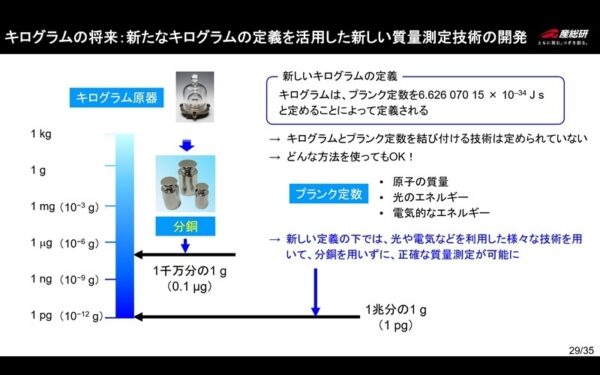 さんざん分銅の話をしておいてこんなことを言うのもあれですが、新しいキログラムの定義下で技術が進むと、分銅を用いることなく正確な質量測定ができるそうです(!)