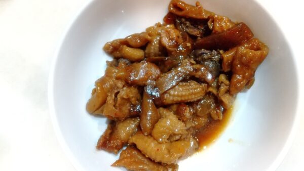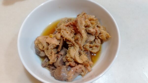 レバー、皮、砂肝等を甘辛く煮込んでいて、絶品。ごはん2杯はいけます。