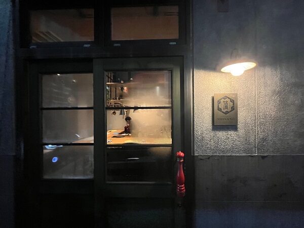 中町通りのつきあたり、角を右に曲がってすぐ。夕方6時ちょうどに店の明かりが灯る。