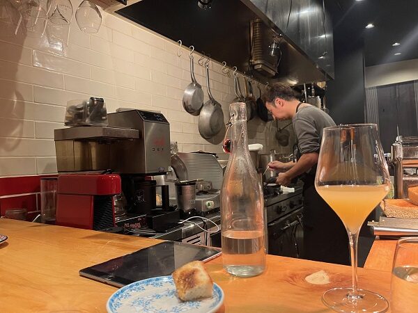 酒についてはこだわりのセレクト。白赤ロゼ、重い軽い、味・香りをサラリと客の希望に合わせて出してくる。そして店主も飲む。
