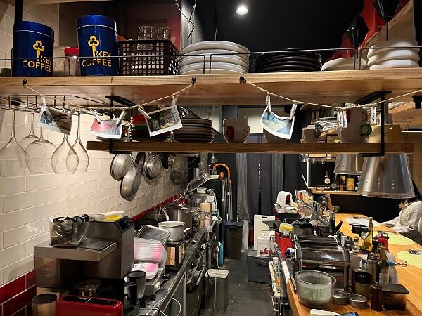 イタリアンらしいキッチン。エスプレッソマシンにフライパン。
