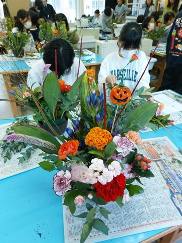最後にハロウィン飾りのかぼちゃを挿して完成!!