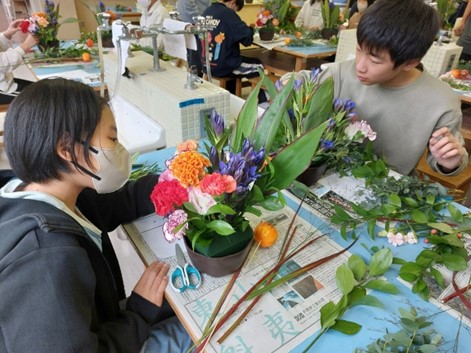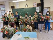 今回、県内産の花は、カーネーション、トルコギキョウ、ケイトウ(セロシア)、ユーカリ、サンゴミズキを使用しました。