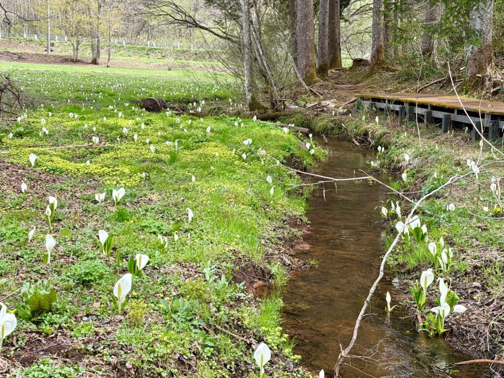 大谷地湿原では水芭蕉が見頃を迎えています。