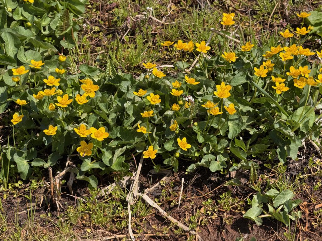 1周20分ほどで回れる遊歩道を歩くとリュウキンカもそろそろ見頃、ニリンソウも咲き始め、場所によっては見頃となっています。