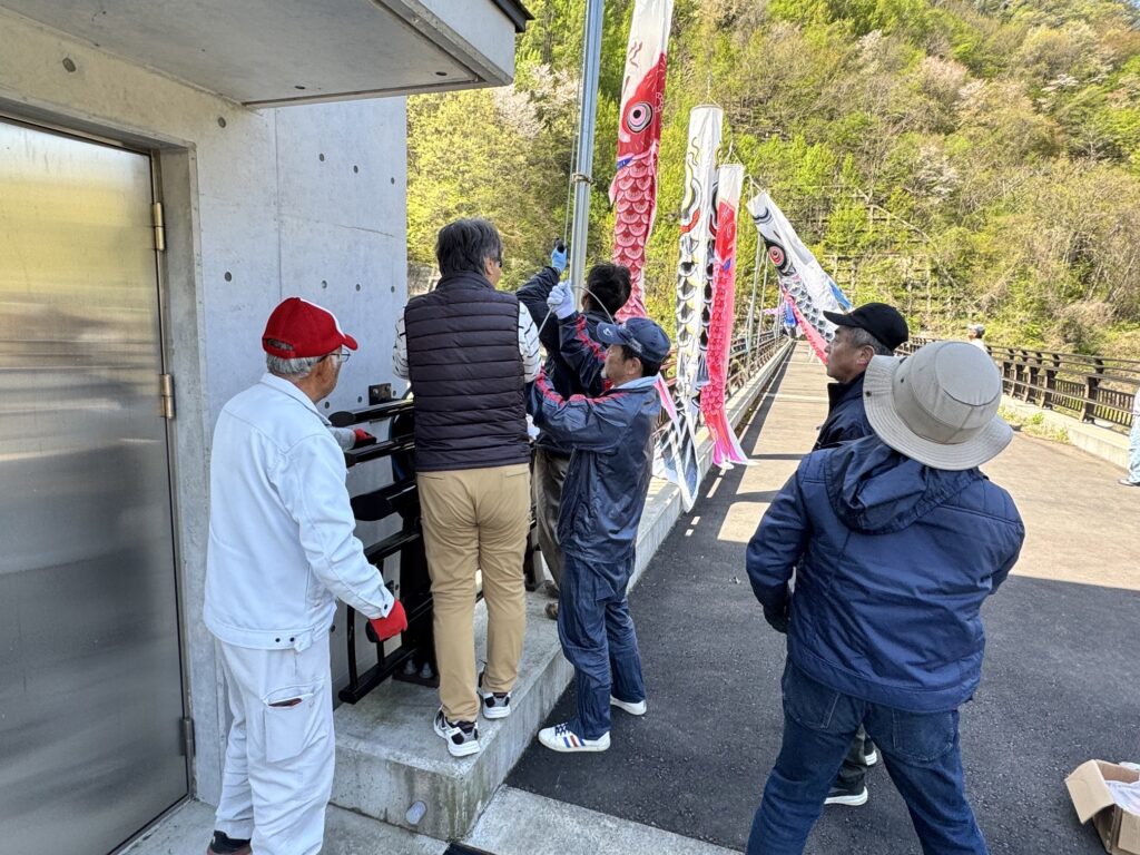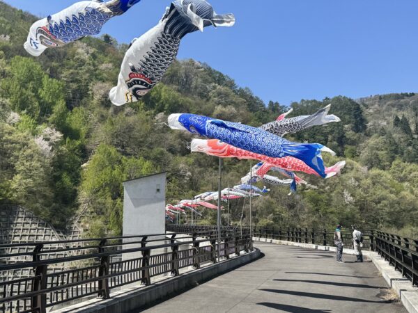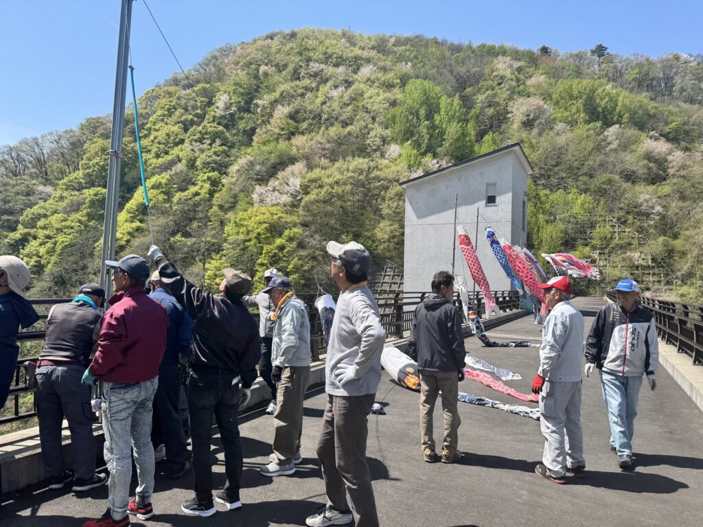 浅川ダムでは、毎年4月下旬から5月下旬まで、地域の皆様が主体となって鯉のぼりを掲揚しています。本年は4月25日(土曜日)に行いました。