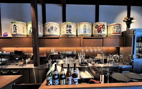 お店に入るとすぐ目に入るのが、長野県各地の名酒の樽。迫力があります!