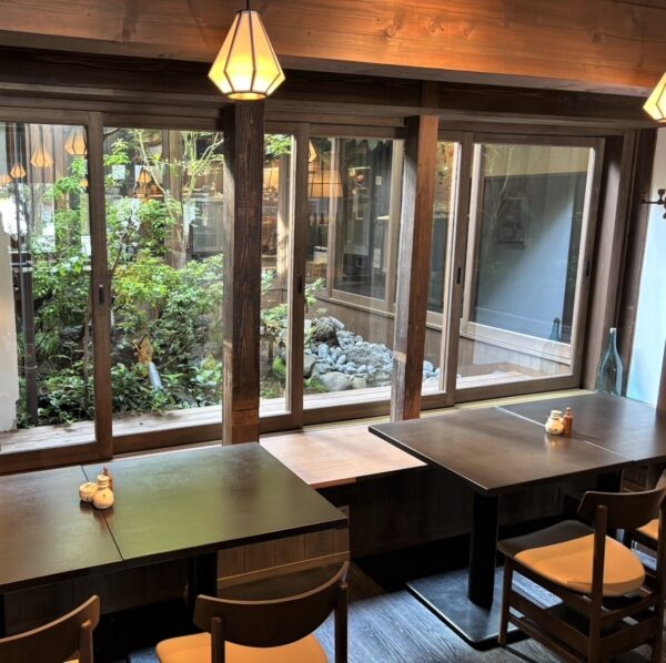 中庭を眺めながらの食事も素敵です