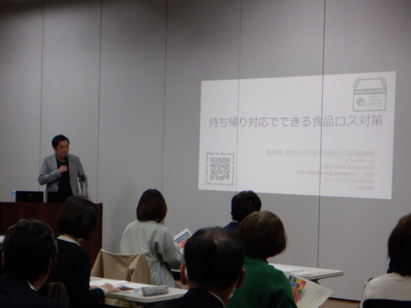 ・講演「持ち帰り対応でできる食品ロス対策」(講師小林富雄氏日本女子大学教授/ドギーバッグ普及委員会委員長)
