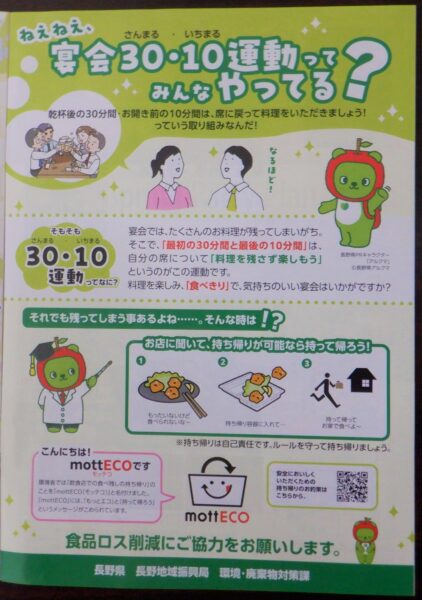 環境・廃棄物対策課のO田です 10月の食品ロス削減月間に合わせ、10月31日(金)に長野駅前にて、長野市、長野エコ...