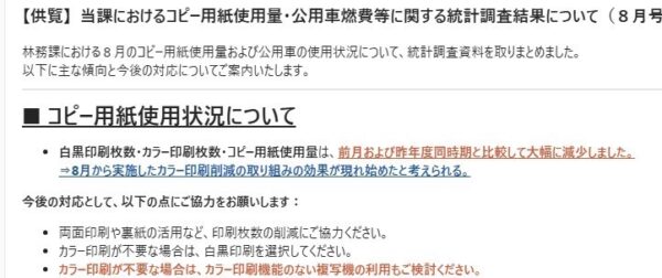 特に印刷枚数が多かった月には、今月は使用量が多めだったことを掲示板で伝え、