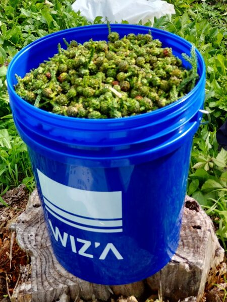 昨年度は約12リットル、今年度は約80リットルの球果を採取できました![]()