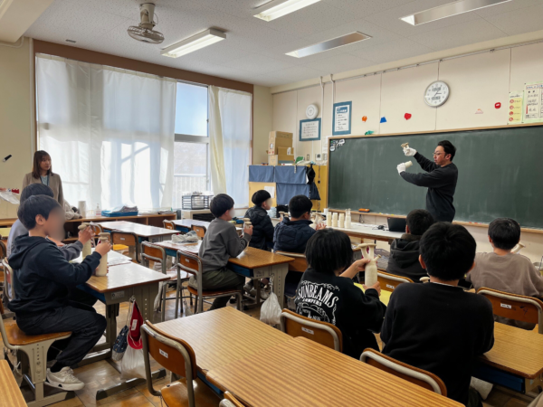 どの教室でも、子どもたちは目を輝かせて出張先生の授業に耳を傾けていました。