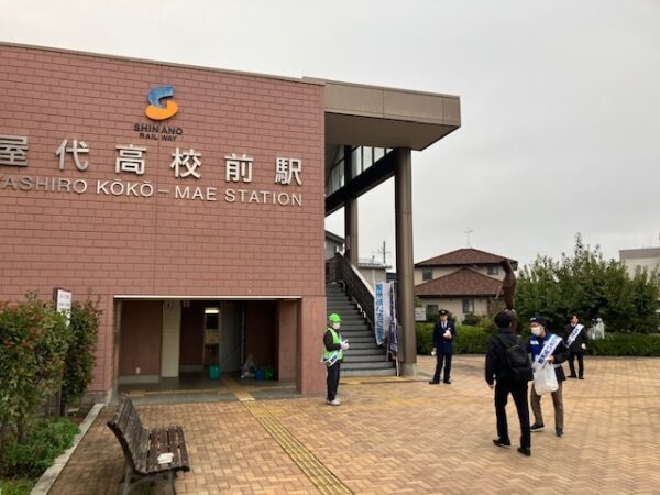 屋代高校前駅では、警察、千曲市教育委員会、千曲少年警察ボランティア協会、