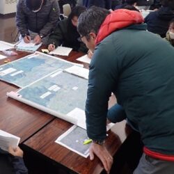 学習活動は、午前9時半から開始の予定でしたが、入念な事前準備が必要なことから、8時半には学校に到着。まずは、使用するチェーンソーやのこぎりを所定の場所に置き、続いて活動時の導線を再度確認した後、学校の周囲にある樹木の確認を行いました。