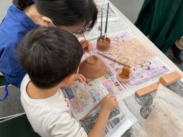 10月25日(土)、長野市のビッグハットで開催された「産業フェアin信州2025」にて、地域の伝統工芸を紹介する取り組みの一環として、「親子松代焼体験教室」を開催しました。