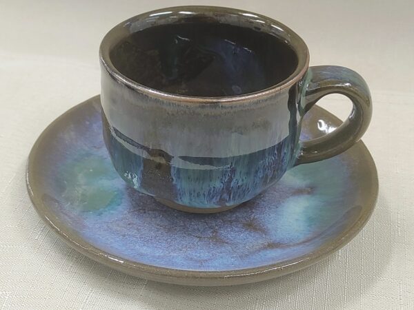 松代焼は、江戸時代から続く長野県松代地域の伝統的な陶芸で、松代温泉の温泉水と藁灰のみで作られた釉薬を使い、「青流し」という技法によって瑠璃色が流れる模様で、素朴で温かみのある風合いが特徴です。