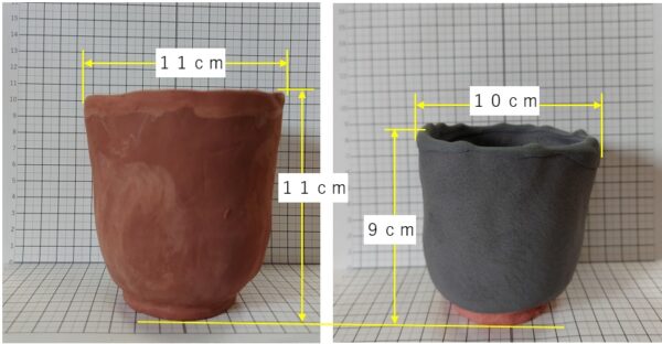 乾燥中に水分が抜けると、粘土が収縮し作品が小さくなります。