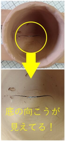 乾燥が不十分だと、素焼の時に水分が急激に蒸発し、作品が割れてしまいます。