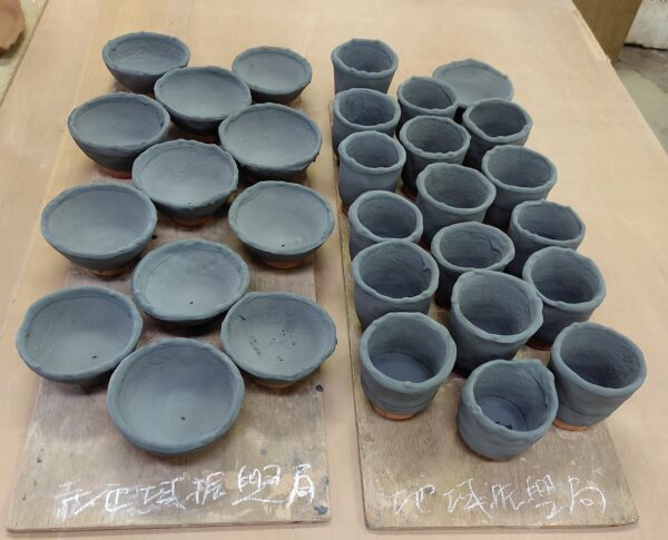 現在は、乾燥と素焼きが終わり、釉薬を掛けて本焼きのときを待っています。