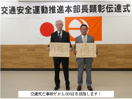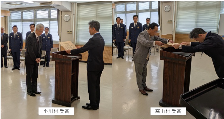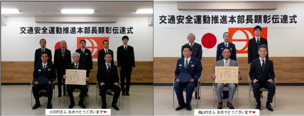 このたび、小川村および高山村が「交通死亡事故ゼロ2,000日」を達成し、その功績をたたえる顕彰が両村に伝達されました。
